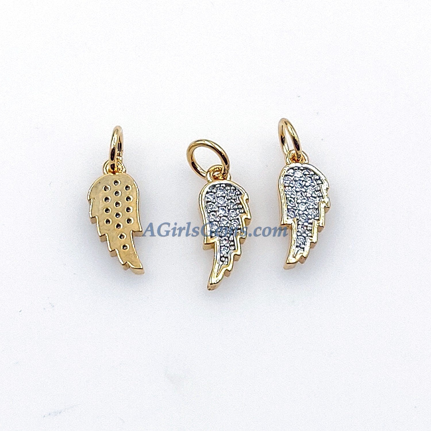 CZ Micro Pave Angel Wings, Starburst, Horn Tiny Charms Pendant, Silver front and Gold Plated Backs for Earrings/Bracelet/Necklace Dangles