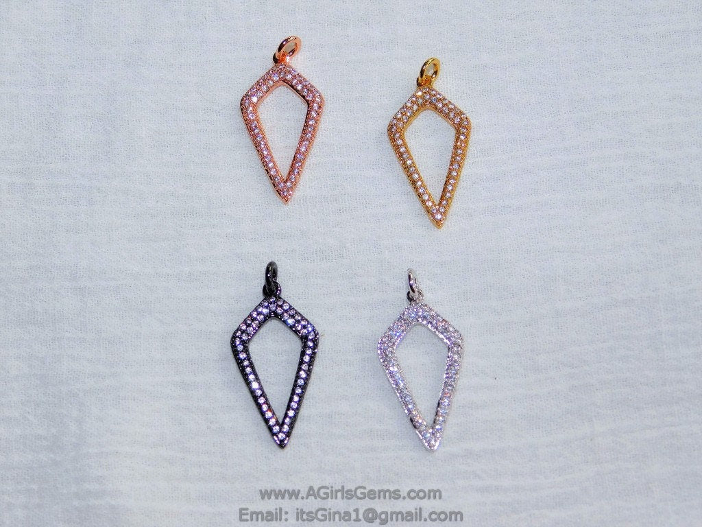 CZ Micro Pave Petal Leaf Charm, 18 k Rose, Silver, Gold, or Black Rhodium Kite, Arrowhead, Triangle Cubic Zirconia Charms for Jewelry Making