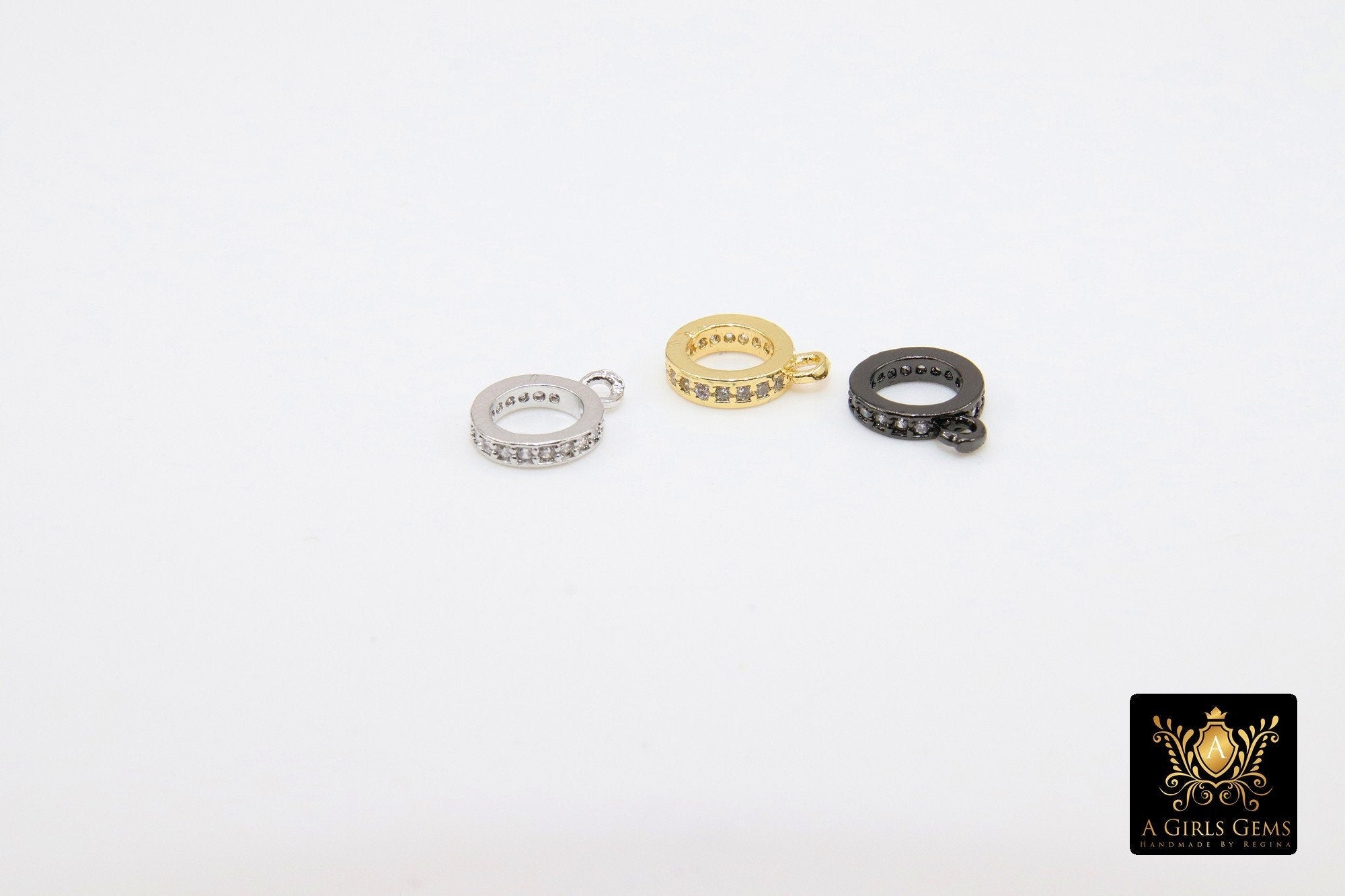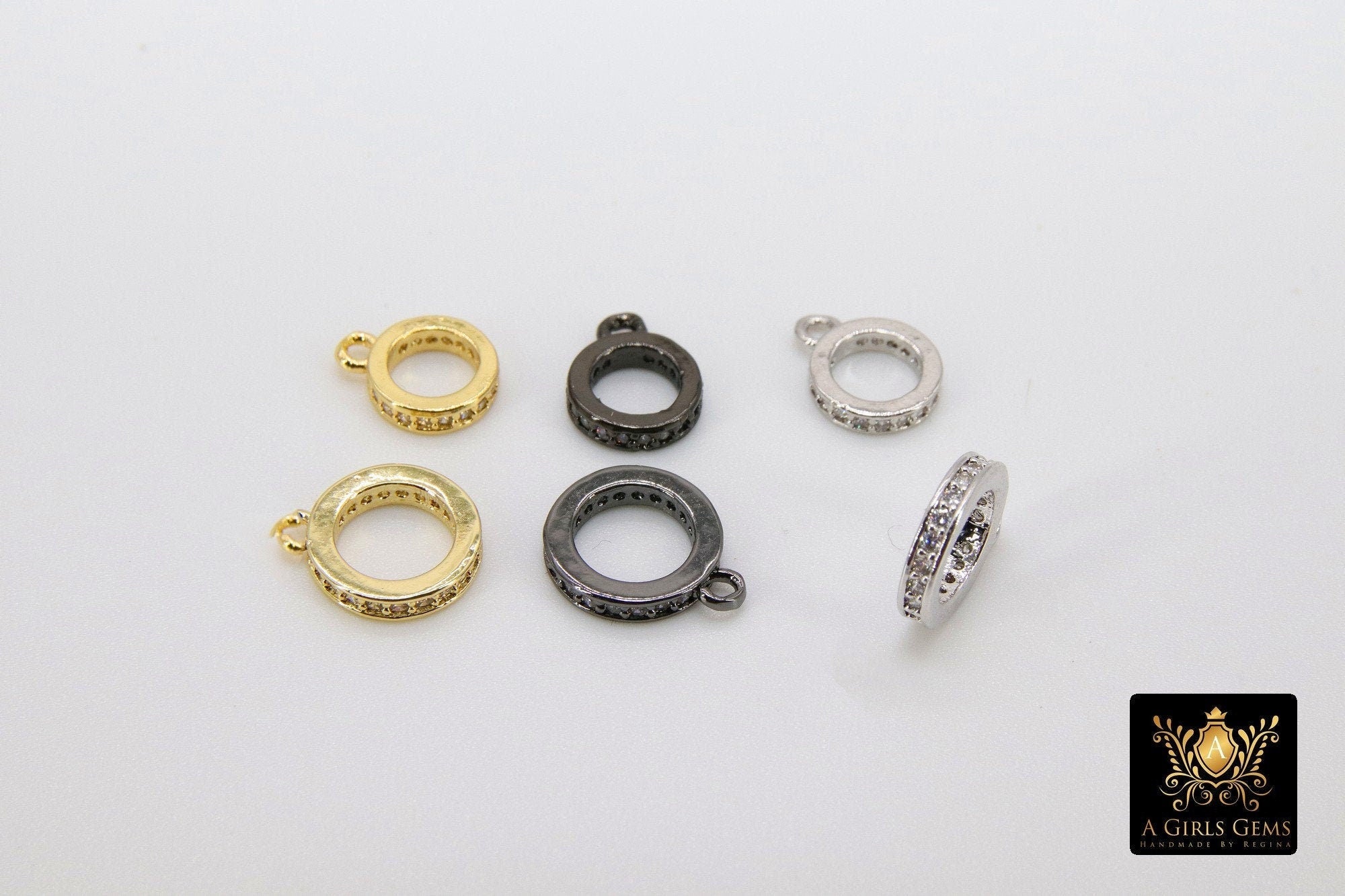 Gold CZ Charm Holder Connector Rings, 8 or 10 mm Cubic Zirconia Slide Spacer Big Circle #137, Large Hole Silver