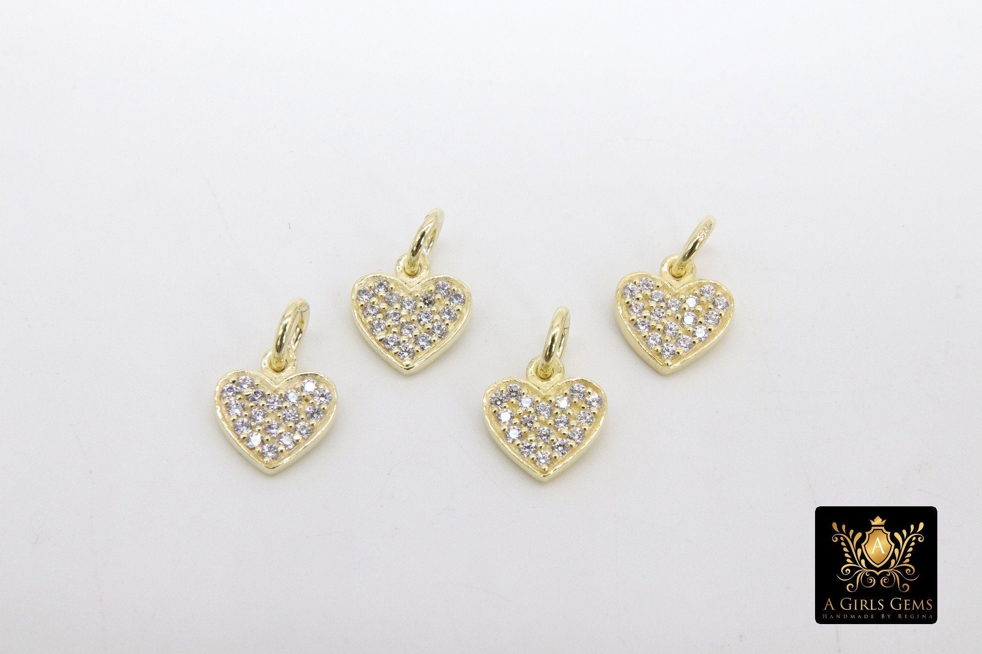 Gold CZ Heart Charms, Genuine Gold over 925 Silver Heart Charms, AG 165