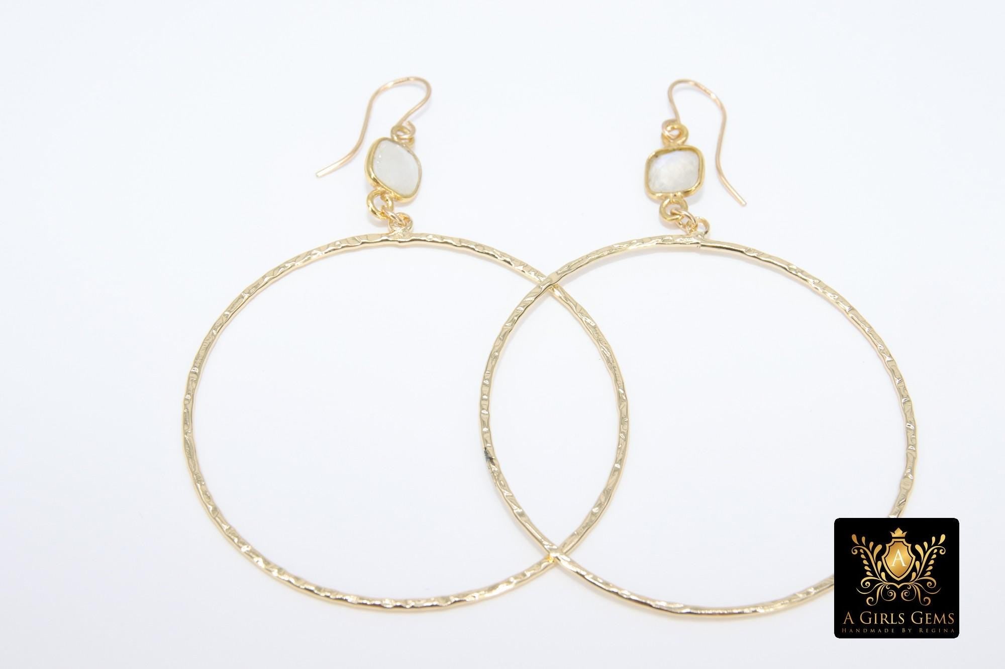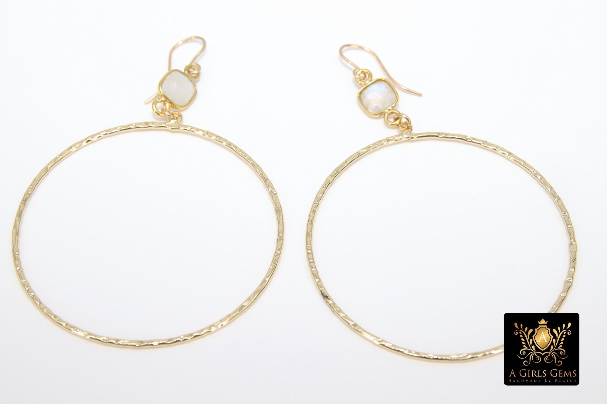 14 K Gold Filled Fancy Hook Earrings, Moonstone Gemstone with Large Hoop Earrings by Regina Harp Designs
