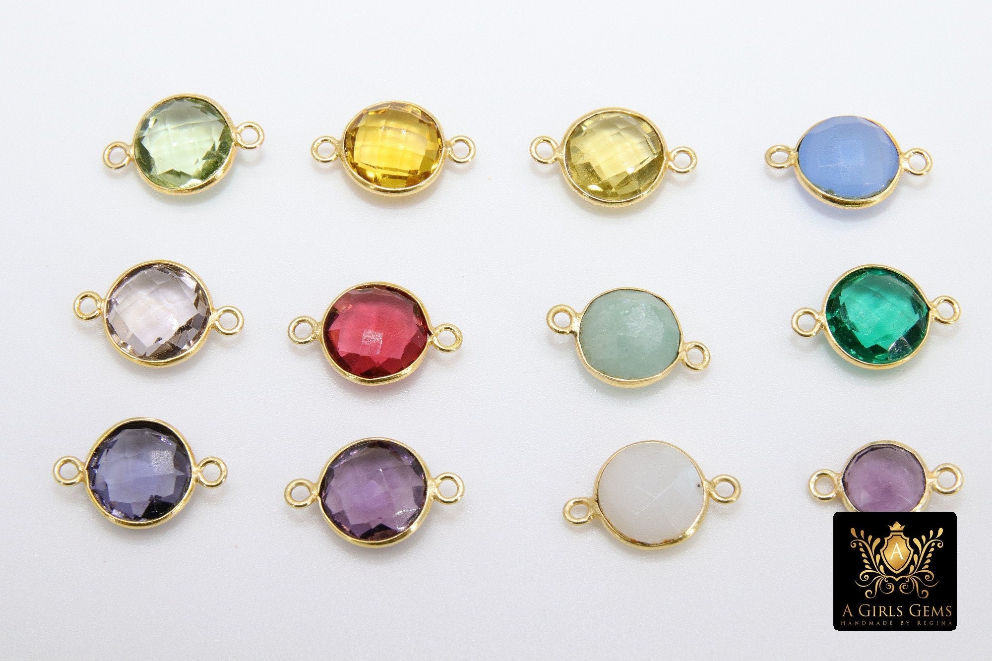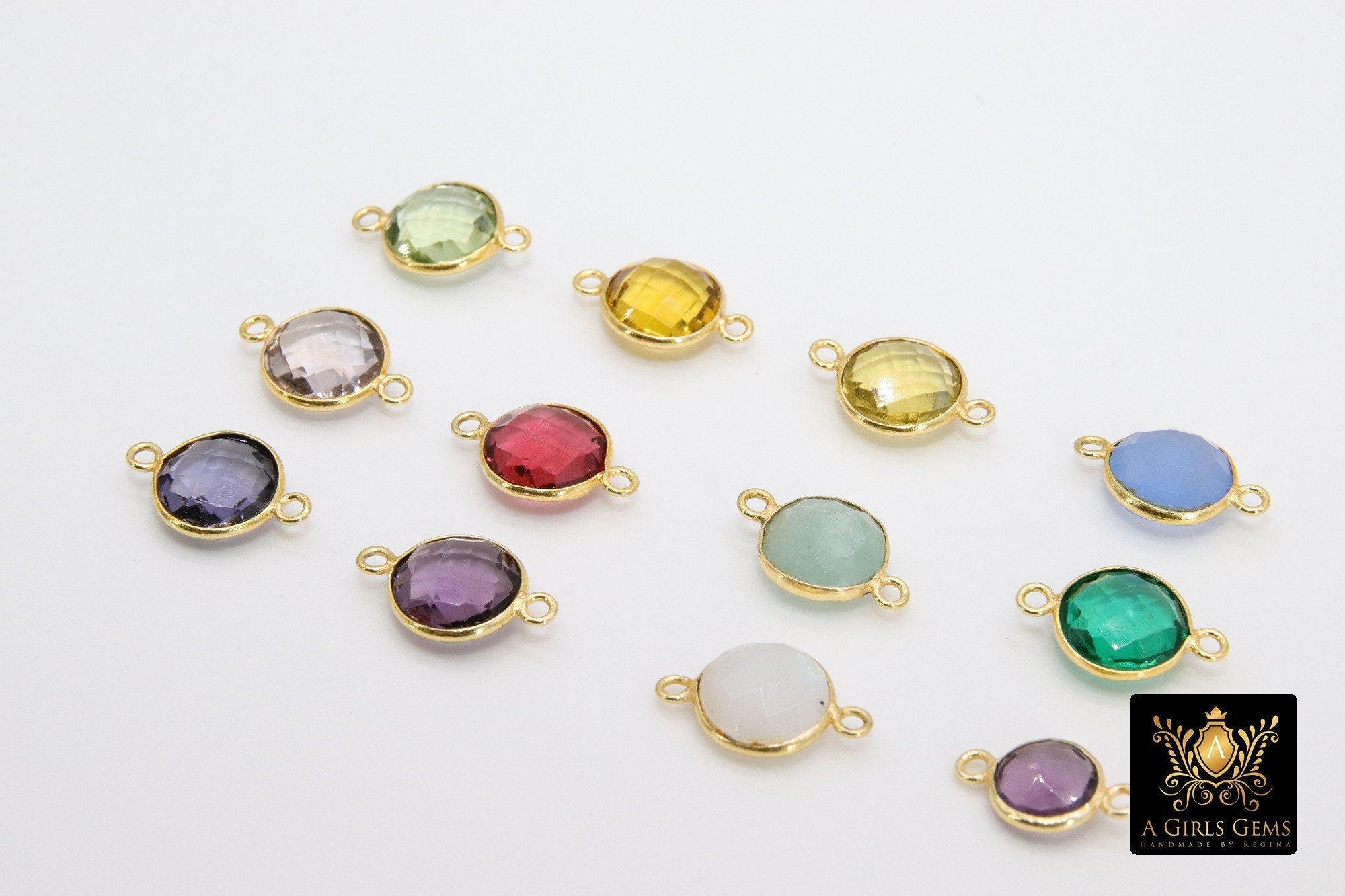 Round Gemstone Connectors, Linking Station Bezels, Birthstone Jewelry Findings