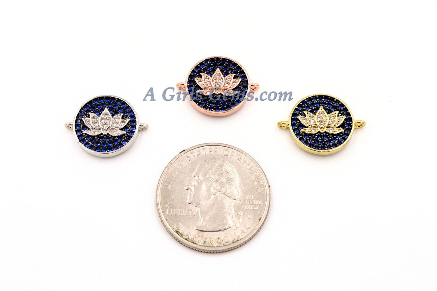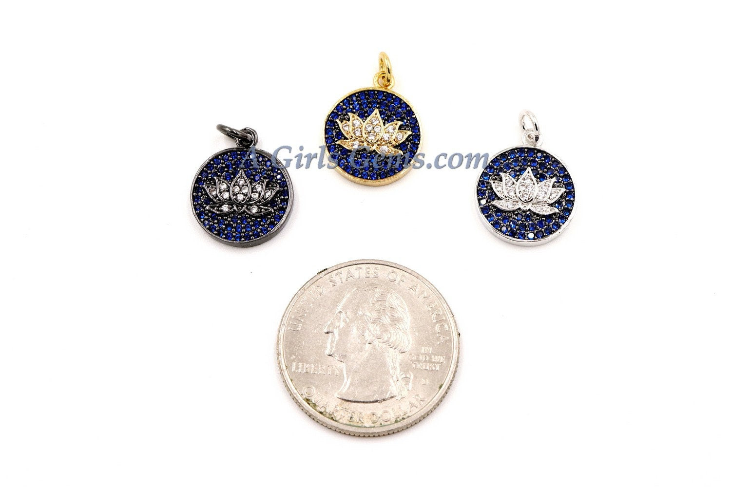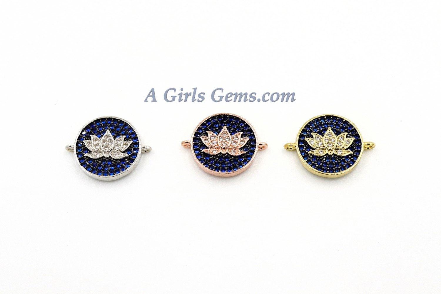 CZ Micro Pave Disc Lotus Flower Charm, CZ Yoga Charms 11 x 14 mm, Cobalt Blue Lotus Flower Charm, *ALL Colors* Silver, Rose, Gold AGG271