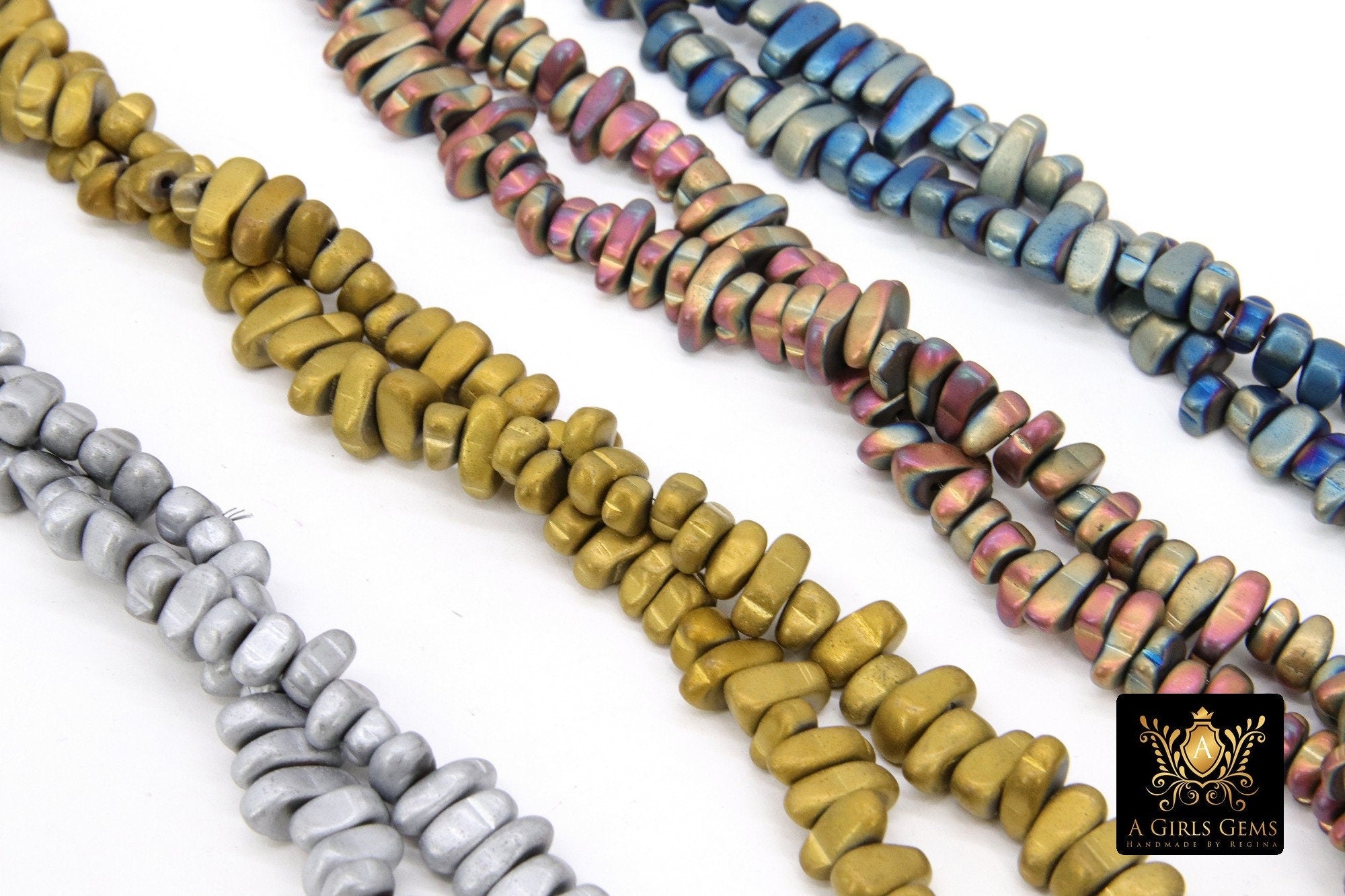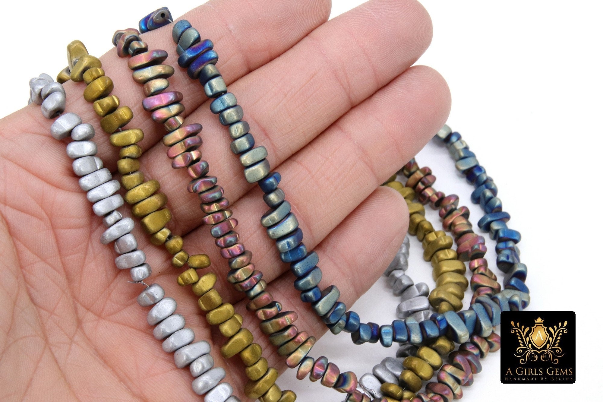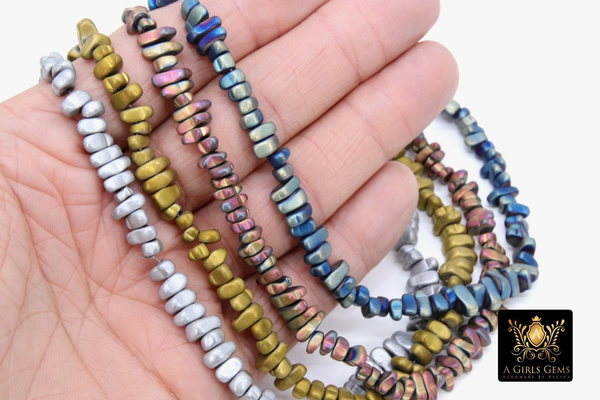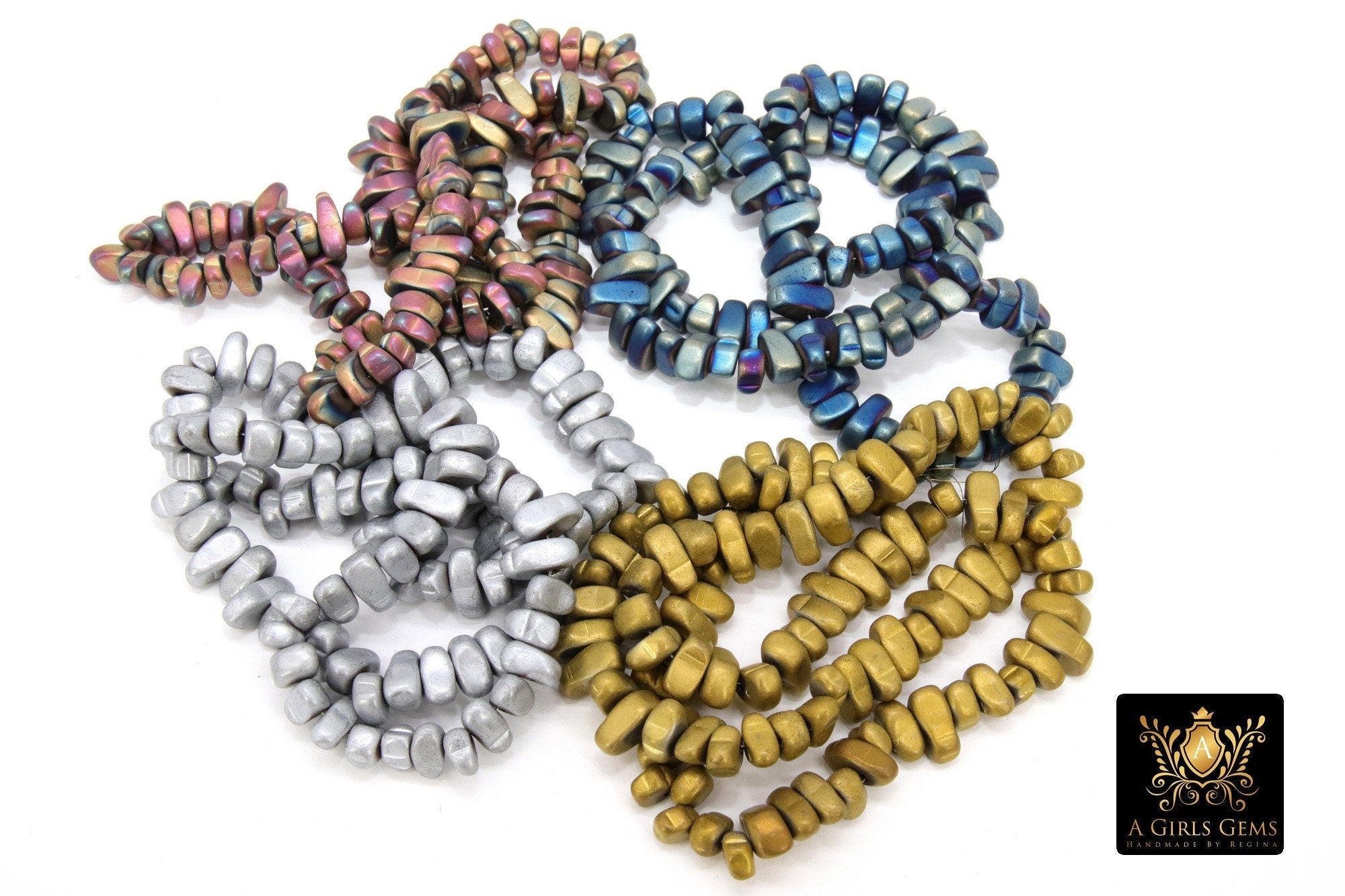 Matte Blue Hematite Beads, Shimmery Pink or Silver Nugget Chip Non Magnetic Gold Beads BS #200, sizes 4~ 10 mm 13.8 inch Strands