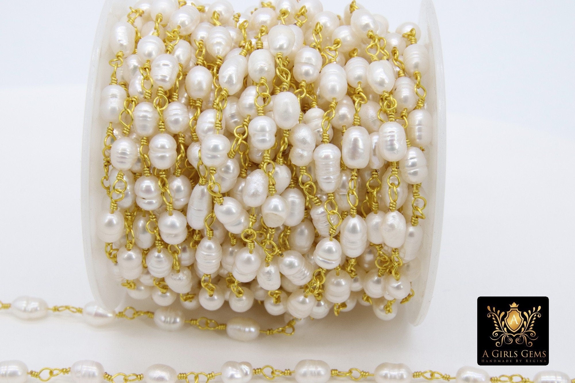 Freshwater Pearls, Gold Wire wrapped Rosary Chain, Pearl Rosary Chain Boho Jewelry Chains