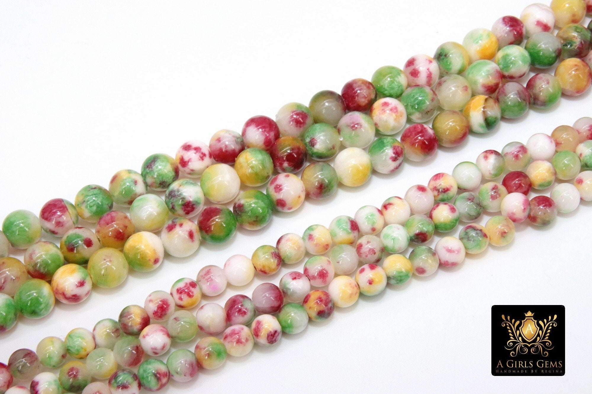 Red and Lime Green Beads, Smooth Mixed Hot Pink Yellow Marble Jade Dyed Beads BS #121, Jewelry Beads sizes 6 mm 8 mm 10 mm