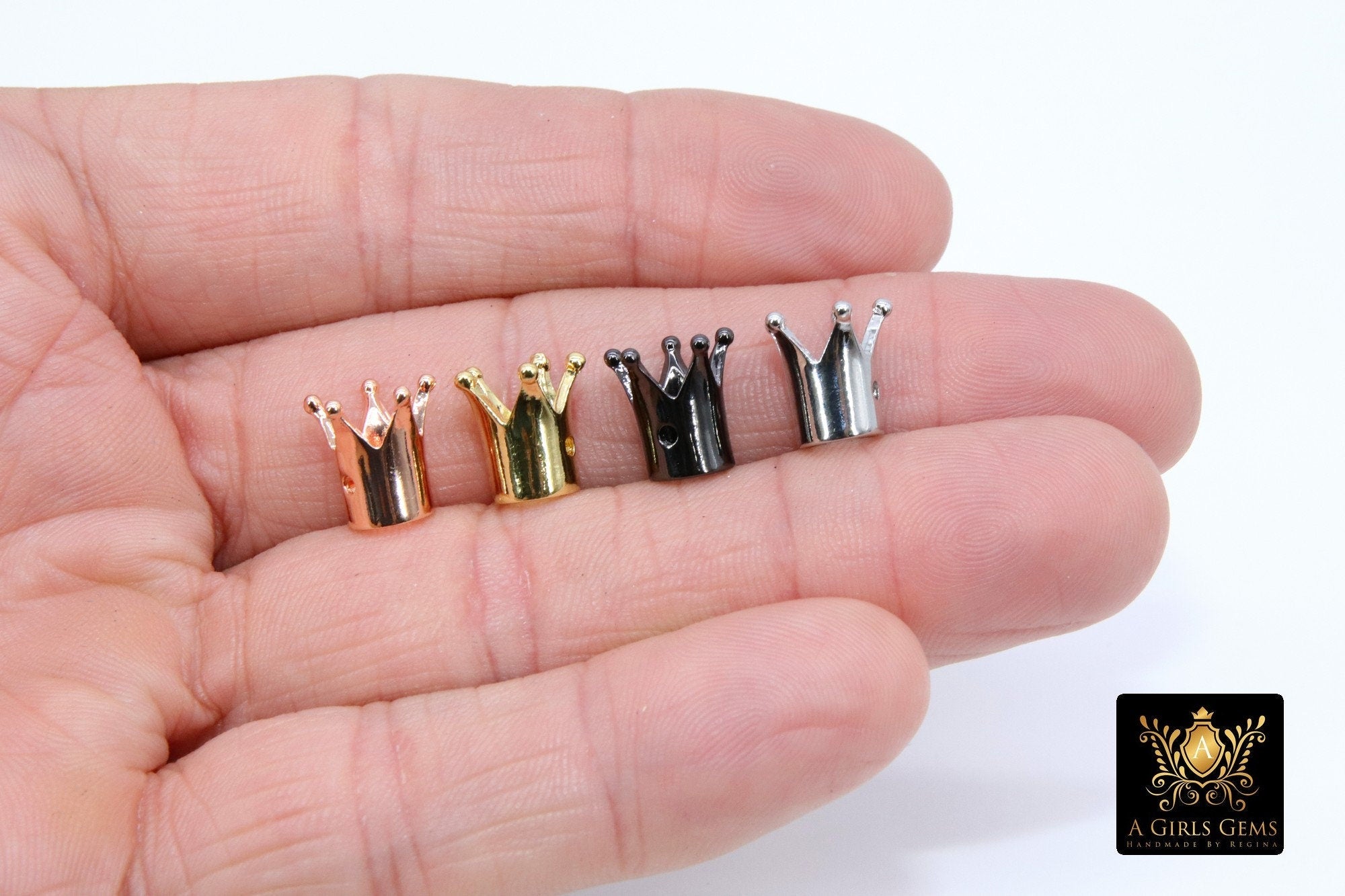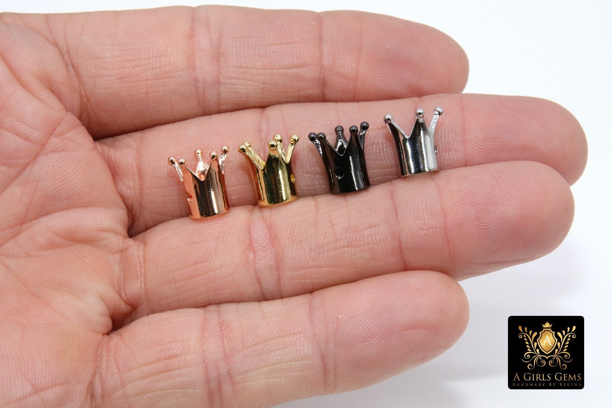 King Crown Shaped Beads, King Crown Spacer for Beaded Bracelets Necklaces, Rose, Gold, Silver, Black Plated - 3 PIECES