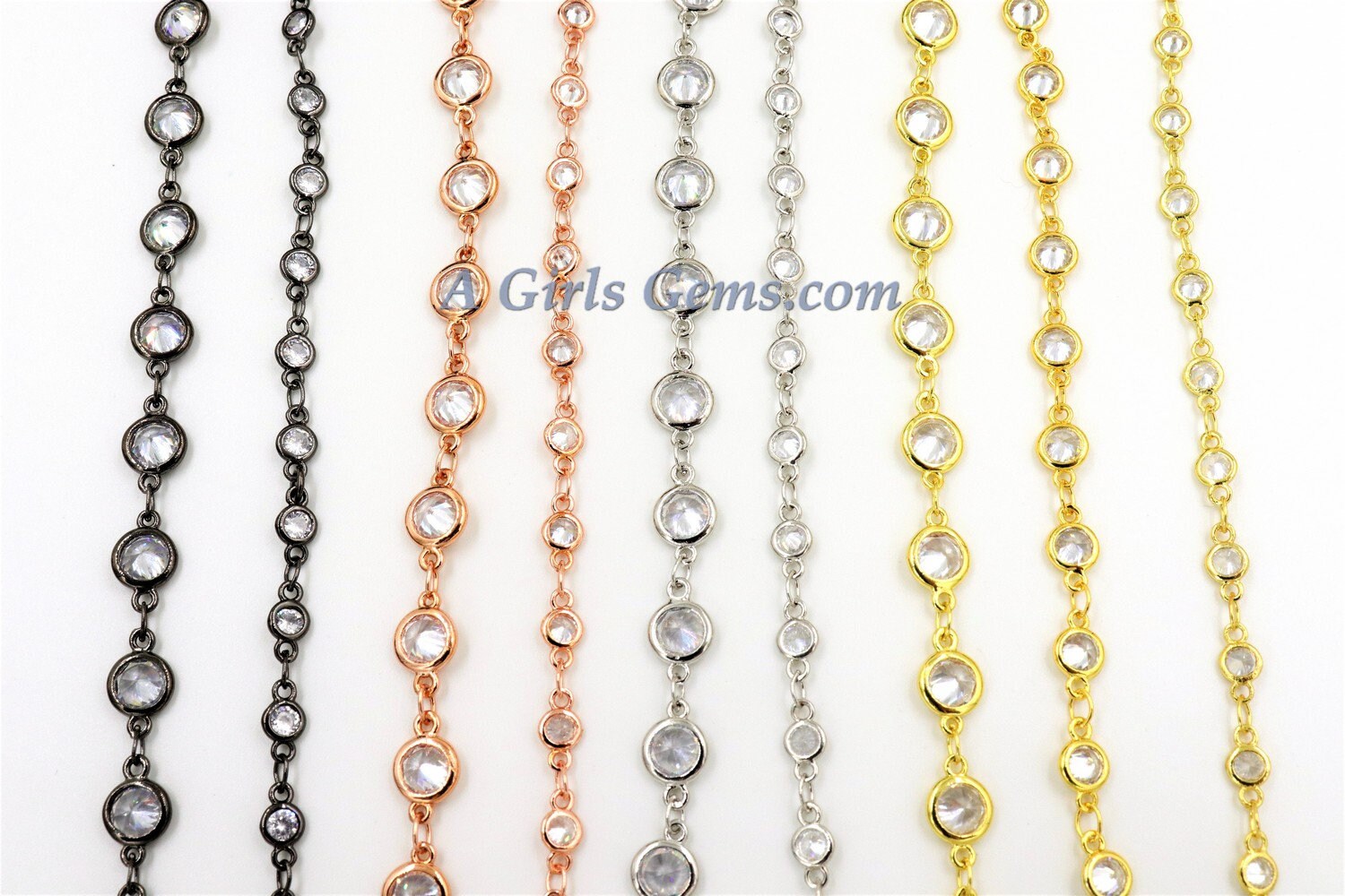 Silver CZ Chain By The Yard, 4 or 6 mm Genuine CZ Chain CH #543, Rose Gold Cz Chains