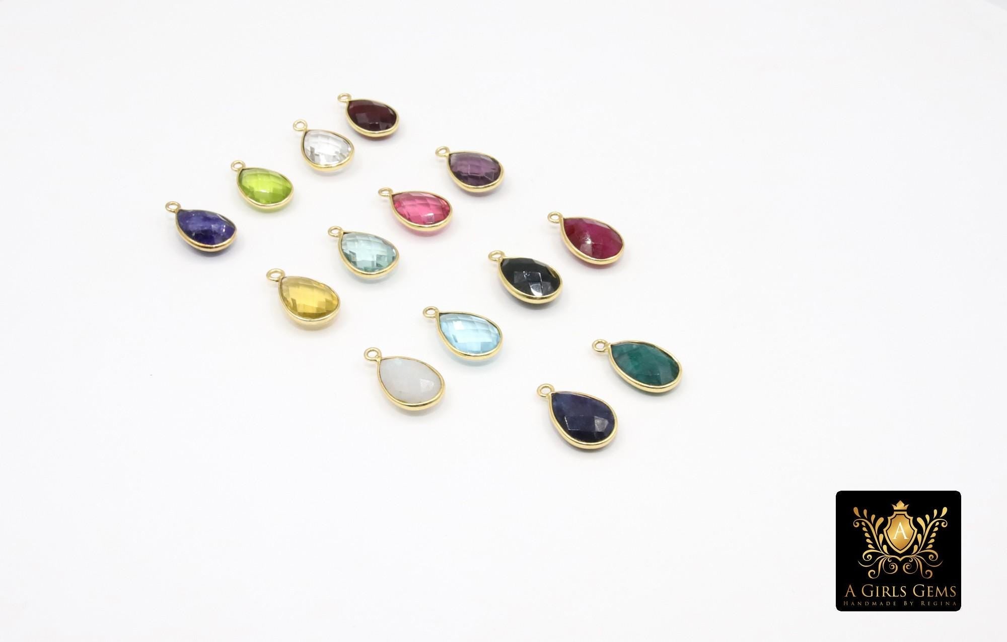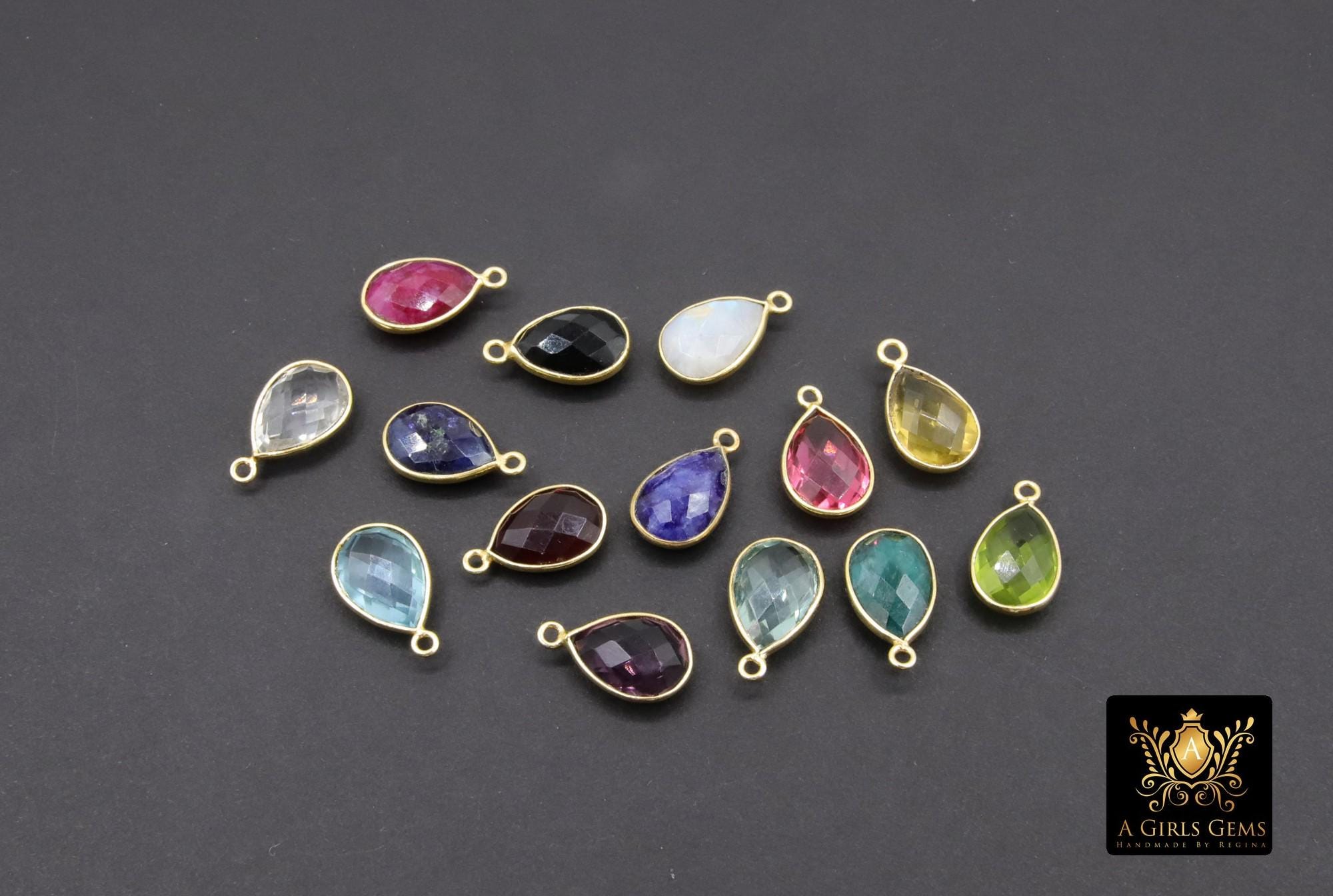 Teardrop Gemstone Charms, Gold Gemstone Charms #2234, Gold Over 925 Sterling Silver Birthstone One Loop Gemstone Charm